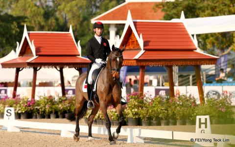 China's Alex Hua Tian leads the way after dressage at the FEI Eventing Asian Championships but Thailand and India are giving chase