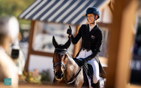 New Zealand's Monica Spencer and her thoroughbred Artist lead the way after dressage at MARS Maryland CCI5* at Fair Hill